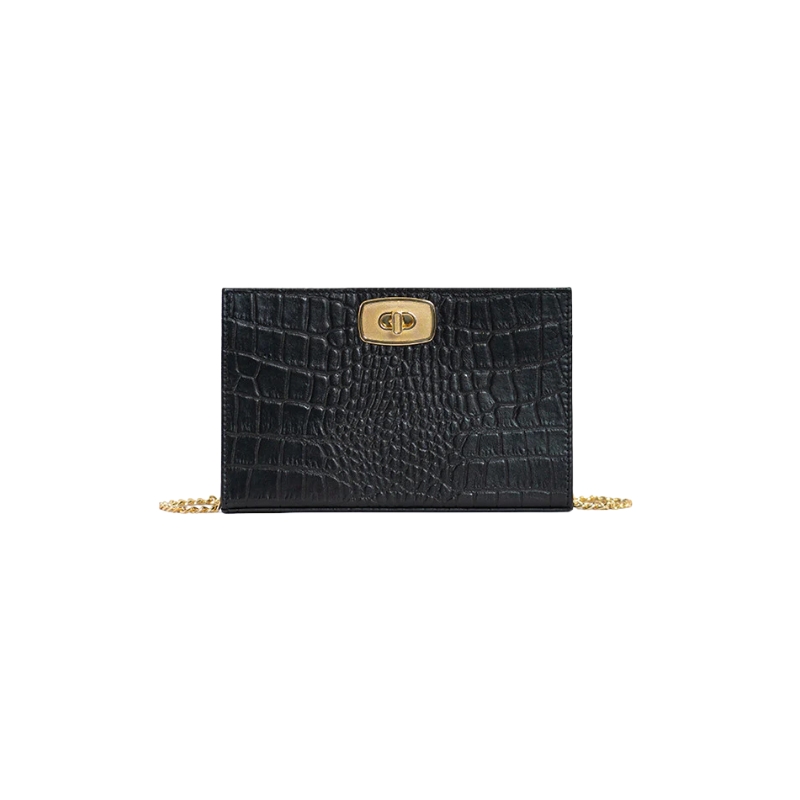 With its sleek rectangular shape and minimalist design, the clutch offers just enough room for your essentials: phone, makeup, and cards. The secure magnetic closure ensures your belongings are safe, while the lightweight construction guarantees comfort all night long.